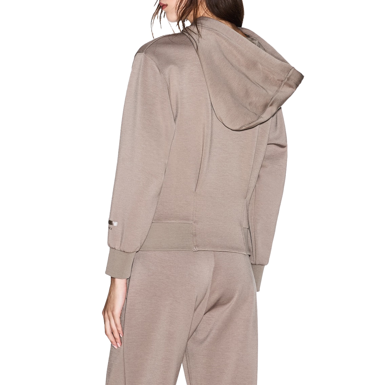 Hanoracul Armani Exchange combină stilul sport cu rafinamentul modern specific brandului. Realizat dintr-un material moale și plăcut la atingere, oferă confort sporit și o croială lejeră, potrivită pentru ținutele de zi cu zi. Modelul are glugă reglabilă cu șnururi fine, fermoar metalic și logo discret aplicat pe piept, detaliu care adaugă o notă elegantă și contemporană. Manșetele și tivul elastic completează designul, oferind o formă bine definită și versatilitate în purtare.