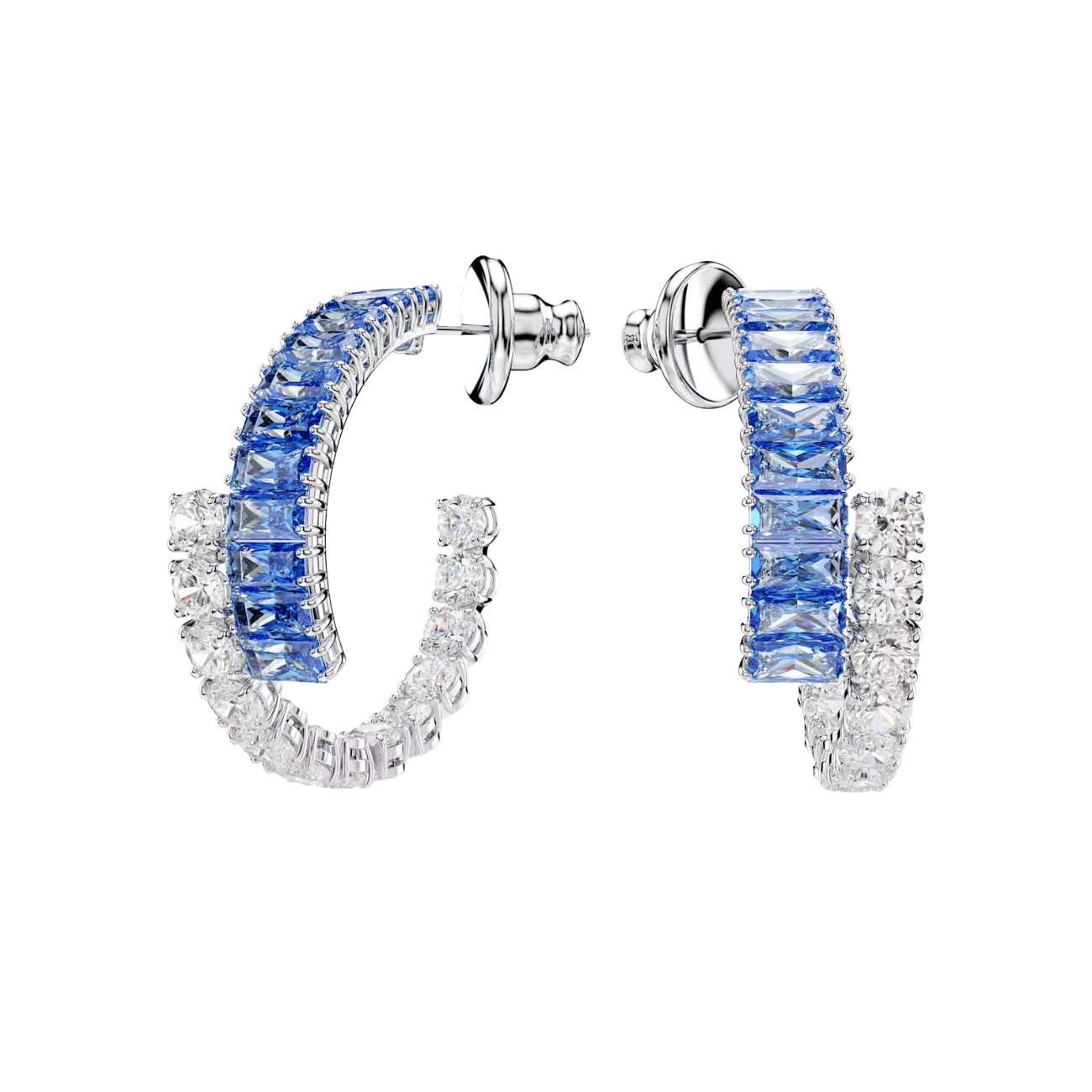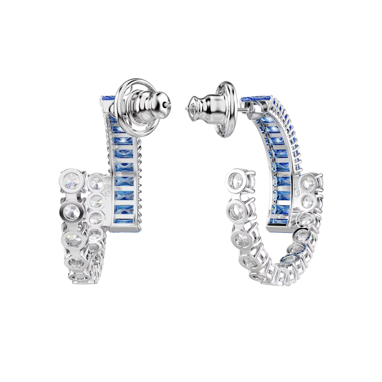 Cerceii Swarovski Matrix 5722459 îmbină armonios rafinamentul clasic cu accente moderne. Realizați din cristale tăiate pătrat și rotund, dispuse într-un gradient elegant de albastru și alb, aceștia creează un joc vibrant de lumină și culoare. Placarea cu rodiu adaugă un luciu rece și sofisticat, oferind un contrast subtil și o notă contemporană perfectă pentru orice ocazie.