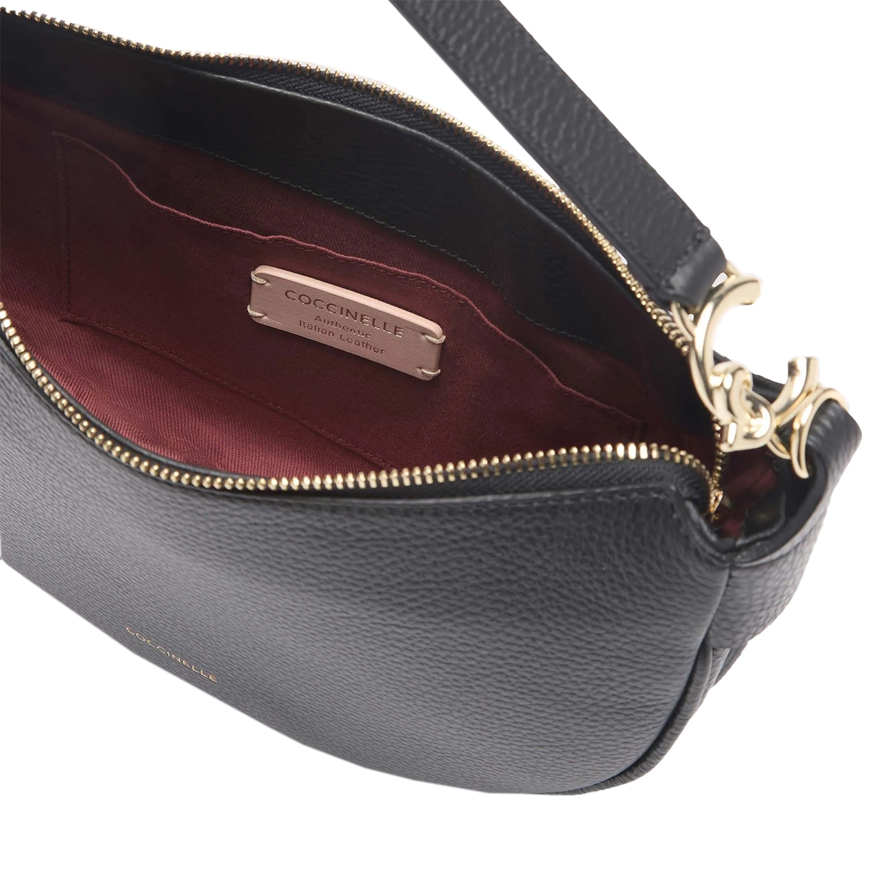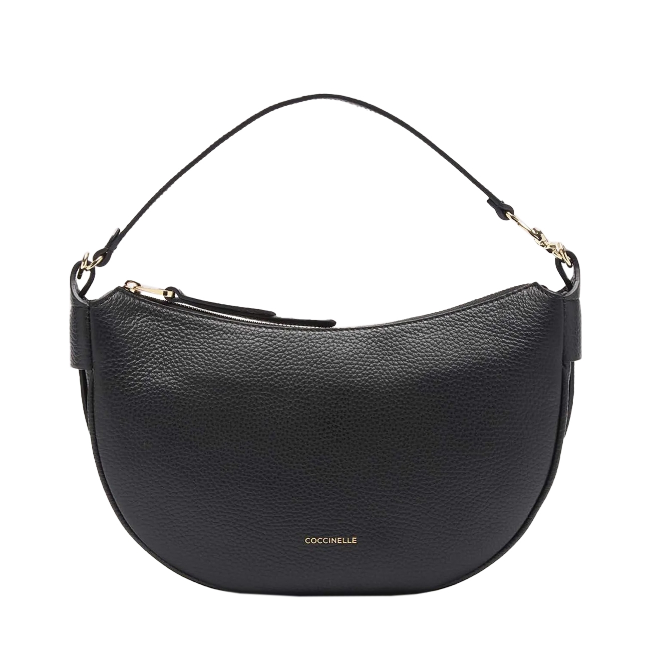 Geanta Coccinelle C-Easy în culoarea neagră este un accesoriu modern și esențial pentru femeia activă. Confecționată din piele texturată de înaltă calitate, această geantă tip umăr are o siluetă curbată, elegantă și un design minimalist, accentuat de logo-ul discret auriu. Breteaua ajustabilă permite purtarea versatilă, iar închiderea cu fermoar păstrează obiectele personale în siguranță.