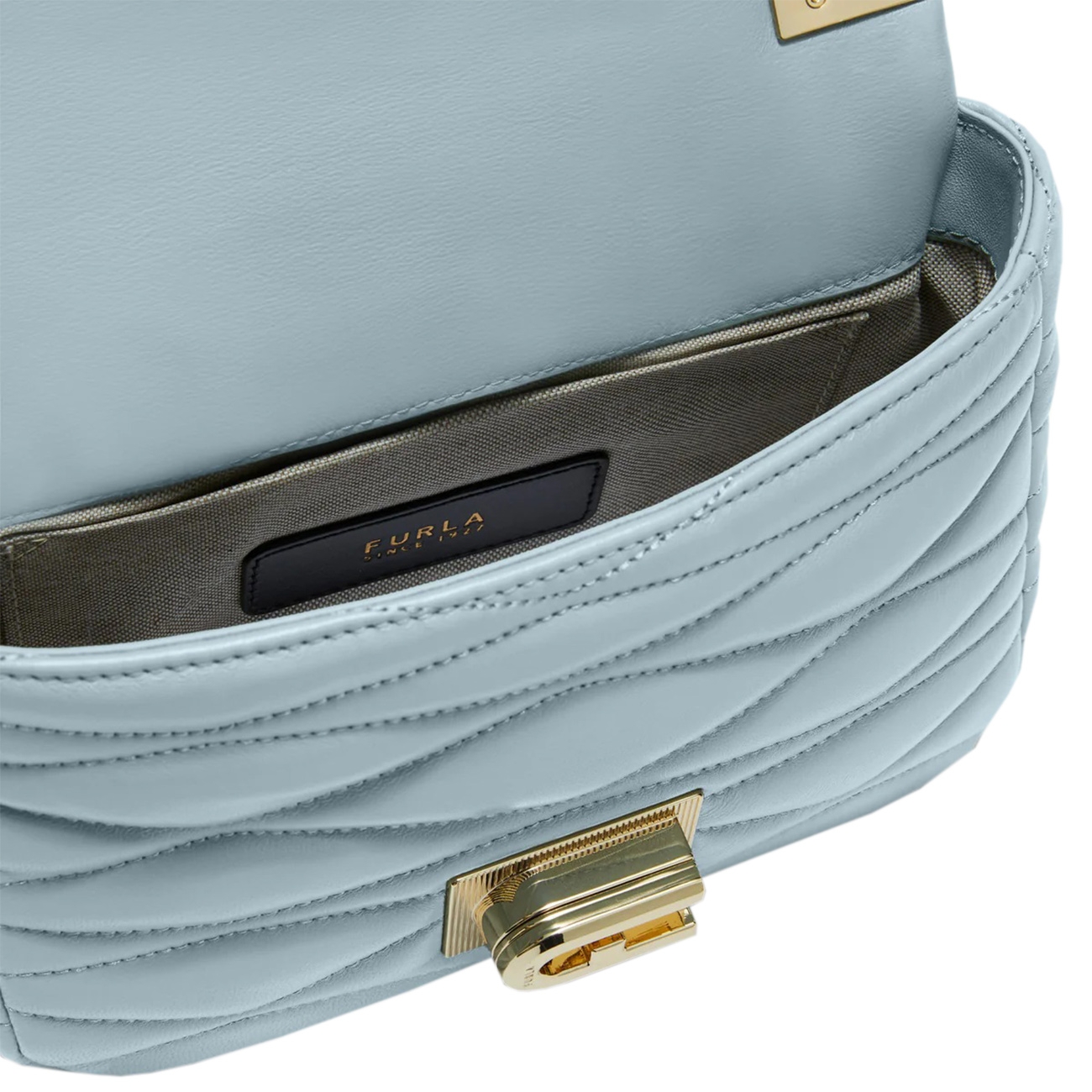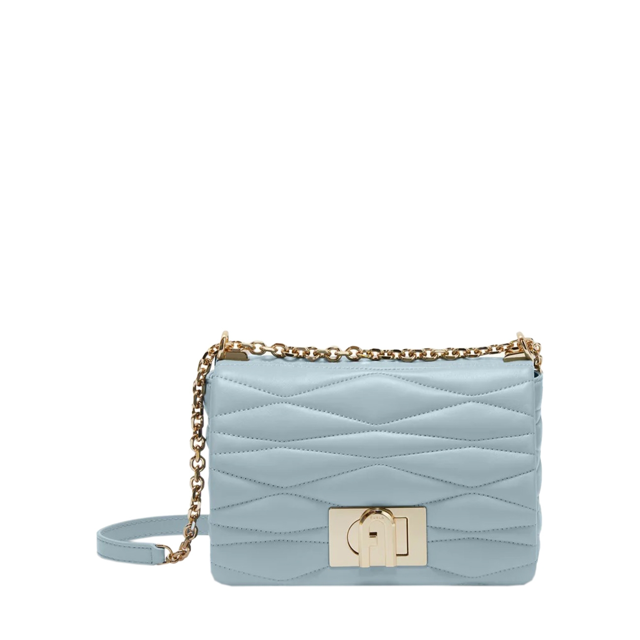 Geanta Furla 1927 Crossbody 22 Nappa Dattero Lux Goffrata Mionido atrage prin designul matlasat elegant și finisajele premium din piele nappa. Este prevăzută cu lanț metalic și închidere rotativă aurie, perfectă pentru a completa un look sofisticat de zi sau de seară.