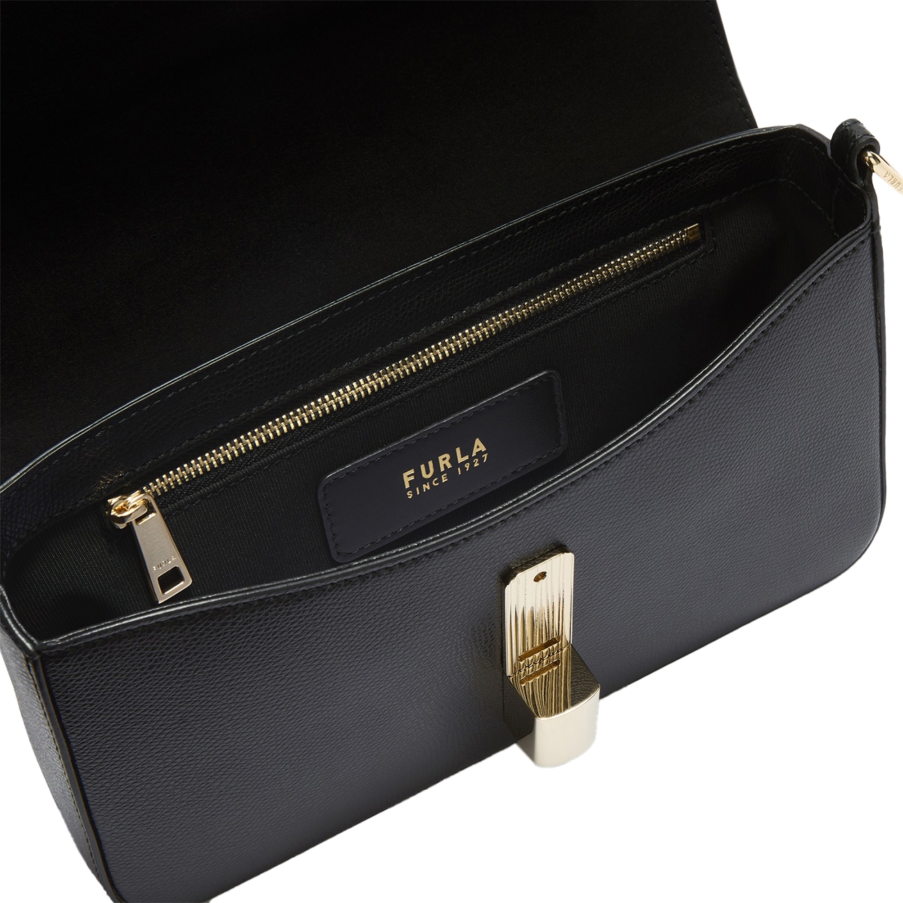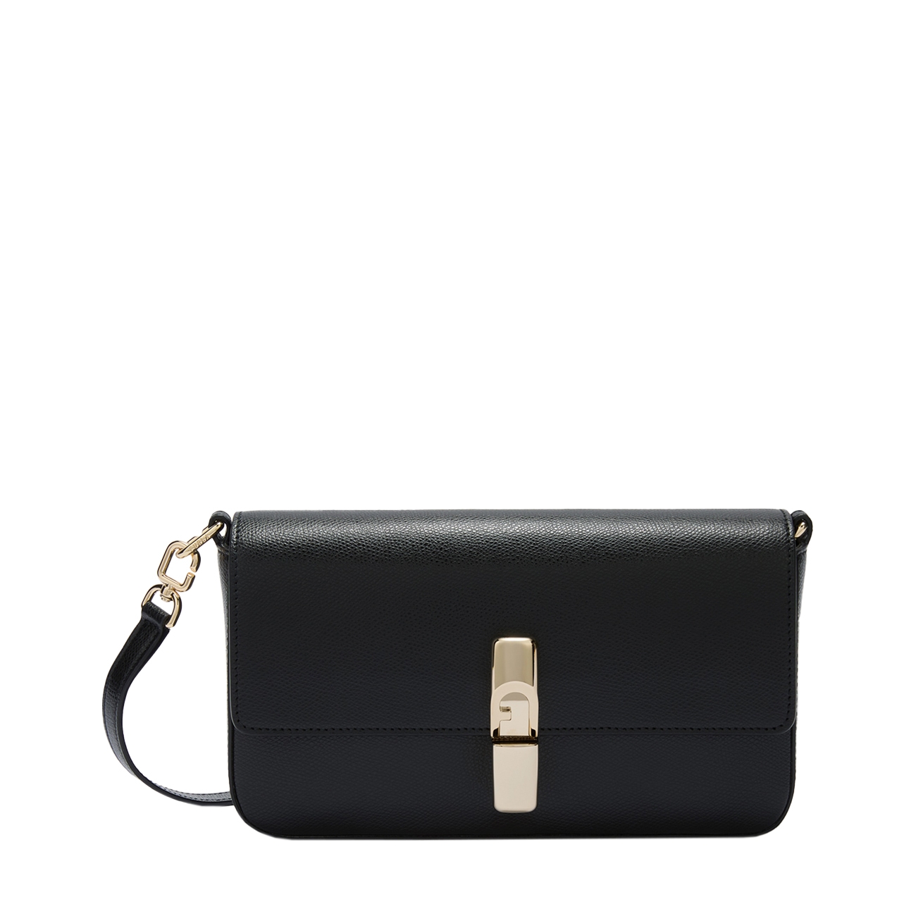 Iride Crossbody – un accesoriu care îmbină rafinamentul italian cu funcționalitatea urbană. Cu o siluetă compactă și modernă, realizată din piele texturată premium, această geantă este gândită pentru femeia care apreciază eleganța fără compromisuri. Banda de umăr reglabilă și detașabilă îți permite să o porți exact cum vrei, iar închiderea cu magnet este accentuată de un detaliu metalic cilindric și sigla iconică Furla Arch, semnătura subtilă a brandului.