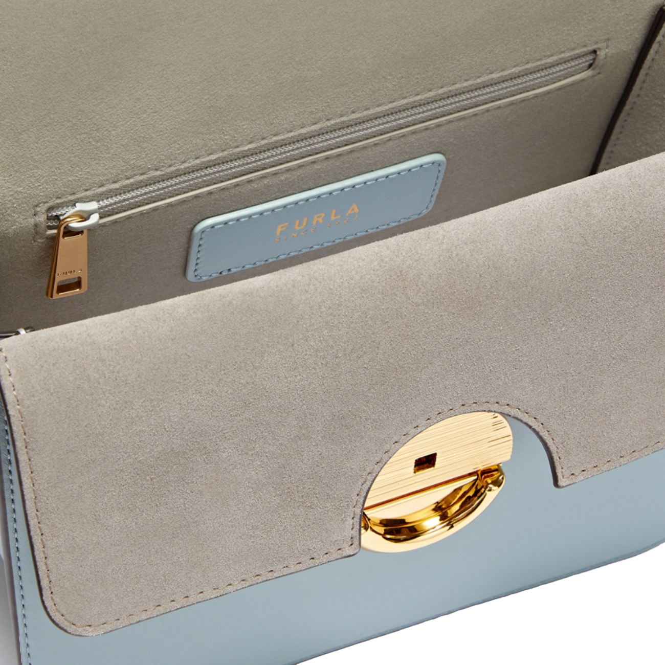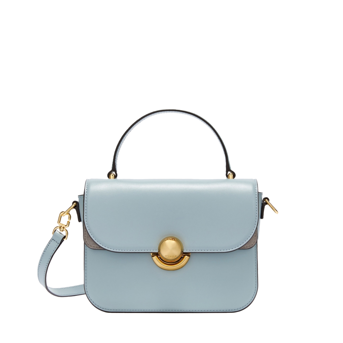 Eleganță compactă cu detalii rafinate – Furla Sfera Mini este o geantă de mână versatilă, realizată din piele Vitello Roma cu inserții de piele intoarsă (suede), ce conferă un finisaj tactil și sofisticat. Sistemul de închidere metalic rotund, cu logo subtil gravat, adaugă o notă contemporană acestei siluete clasice.