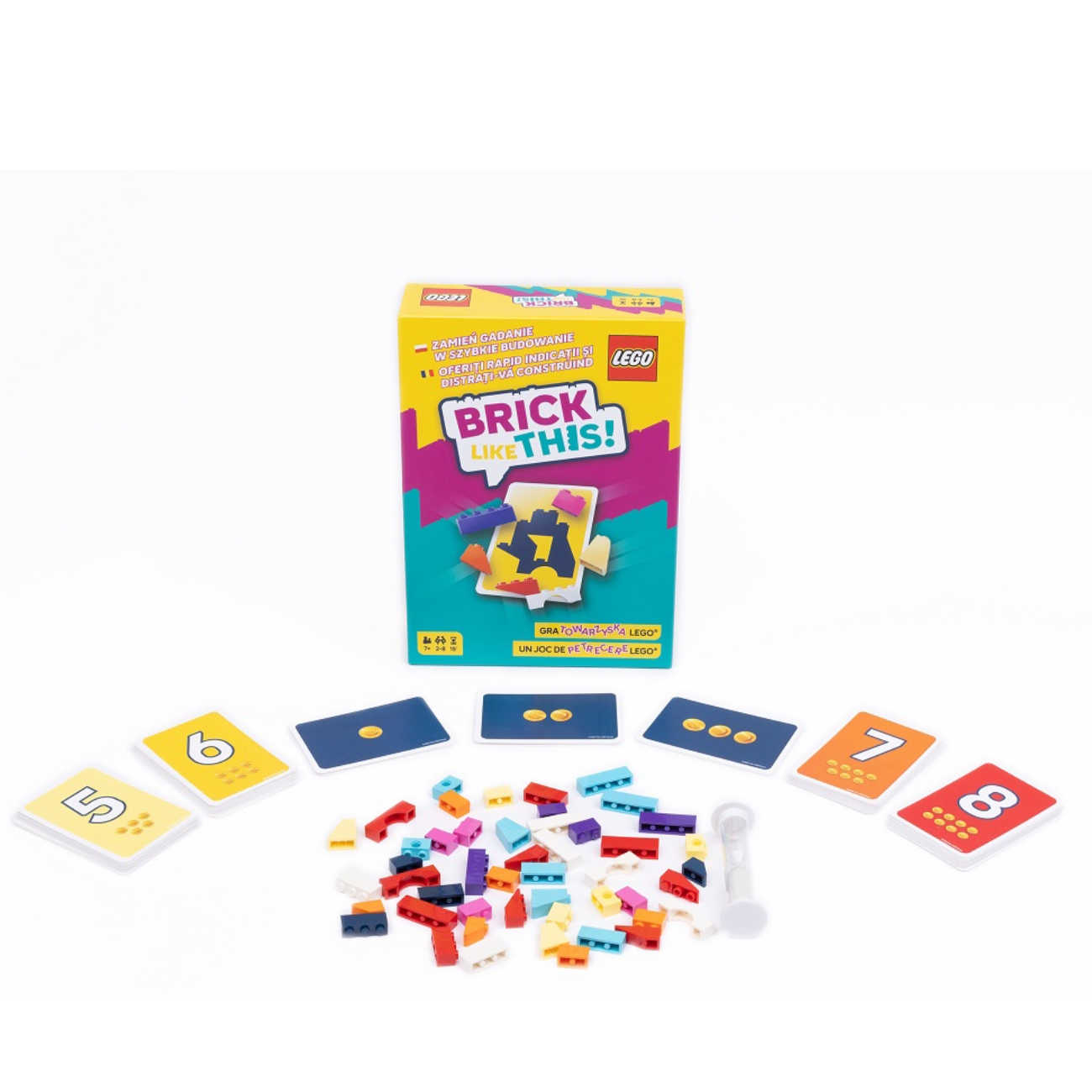 Brick Like This este un joc LEGO distractiv și interactiv, conceput pentru a transforma construcția într-o experiență rapidă și amuzantă. Jucătorii trebuie să ofere și să urmeze indicații scurte și clare pentru a construi formele indicate pe cărți, folosind piesele LEGO incluse. Jocul stimulează imaginația, comunicarea și spiritul de echipă, fiind ideal pentru petreceri și seri în familie. Este recomandat pentru copii de peste 7 ani și poate fi jucat de 2 până la 8 participanți, având o durată de aproximativ 15 minute.