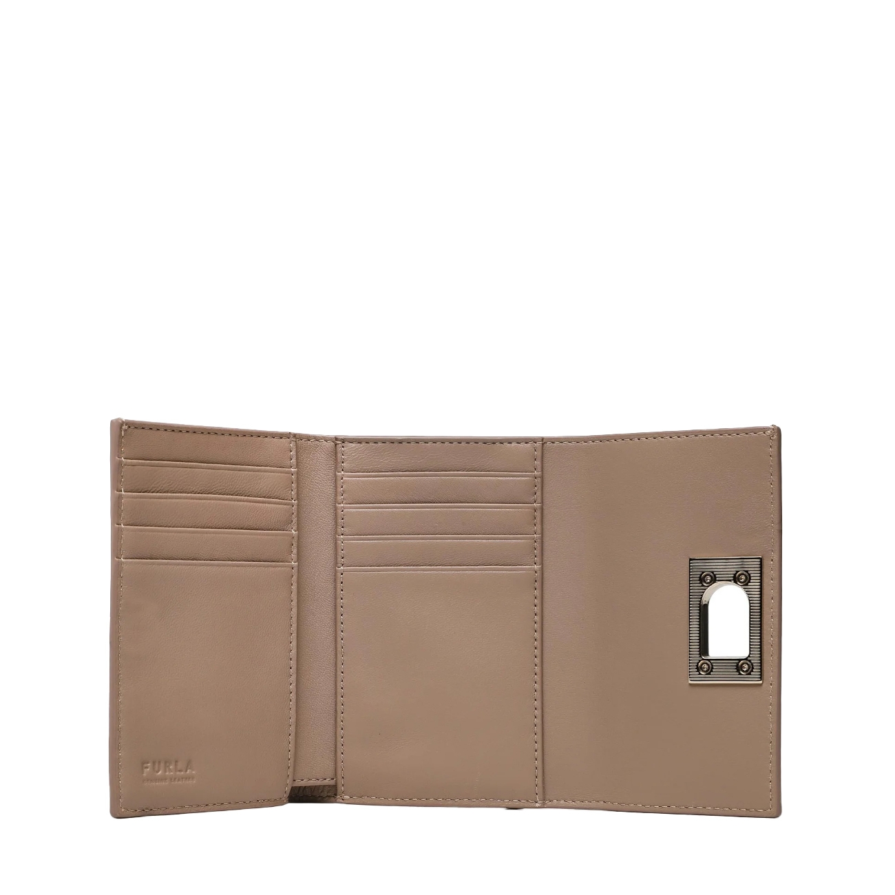 Acest portofel 1927 este un accesoriu spațios și practic, are compartimente în care îți poți pune banii și cardurile în siguranță și îți va scoate în evidență stilul prin eleganța sa. Designul este unul modern și poartă noul logo Furla. Asortează acest portofel cu o geantă 1927 iar ținuta ta va fi completă.