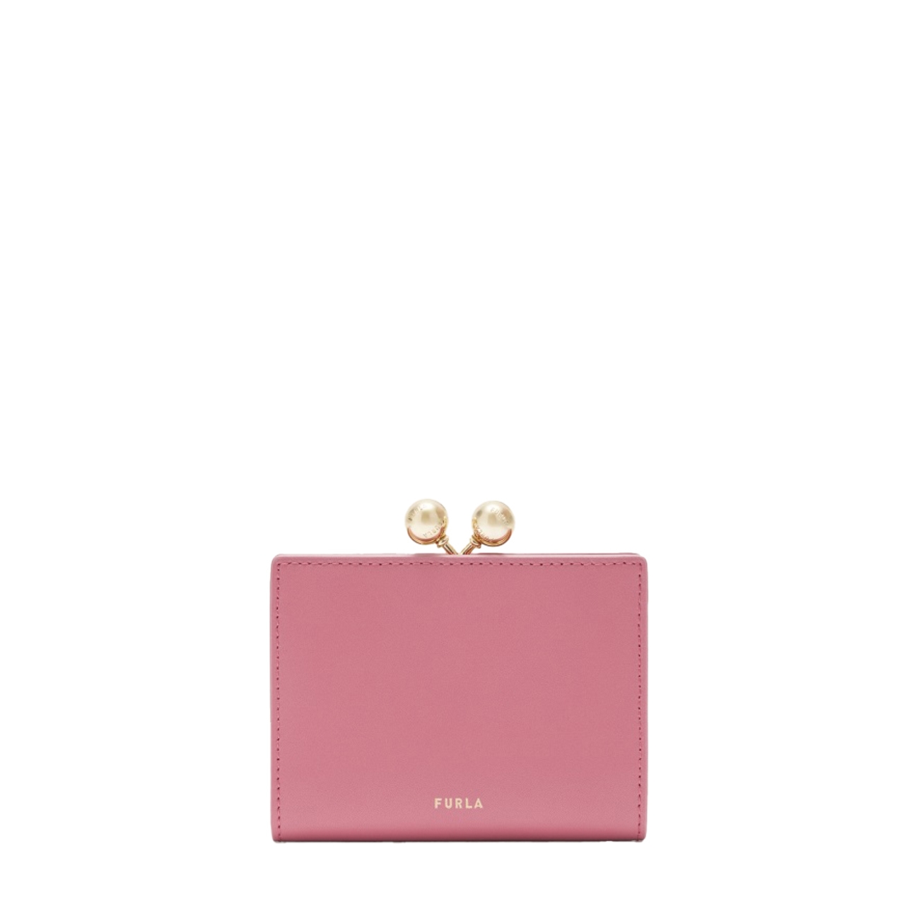 Portofelul Furla Dots este realizat din piele netedă și se remarcă prin închiderea metalică decorată cu detalii tip bilă. Interiorul bine compartimentat oferă spațiu pentru monede, bancnote și carduri. Designul compact și elegant îl face potrivit pentru a fi purtat atât în geantă, cât și separat.