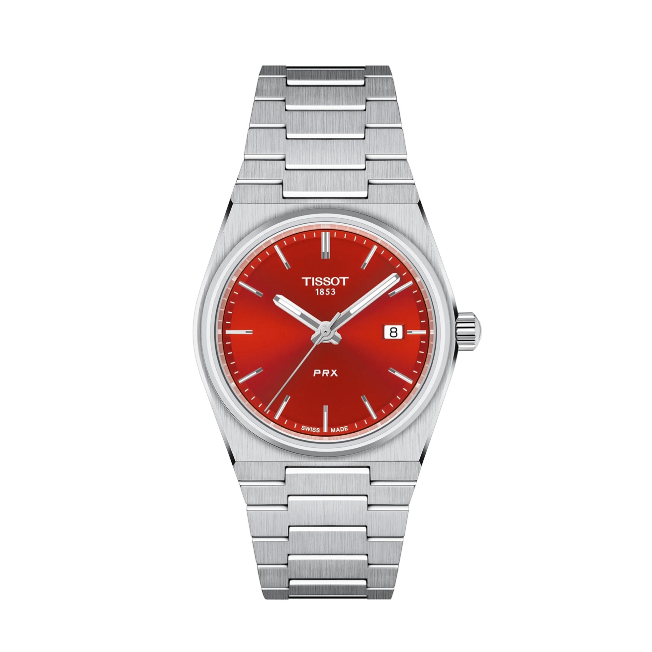 Ceasul Tissot PRX reprezintă o fuziune perfectă între designul retro inspirat din anii ’70 și eleganța contemporană. Cadranul roșu vibrant conferă un accent modern și dinamic, fiind completat de carcasa subțire și brățara integrată din oțel inoxidabil, cu finisaj periat de înaltă calitate. Mecanismul quartz elvețian asigură o precizie impecabilă, iar cristalul din safir protejează suprafața de zgârieturi.