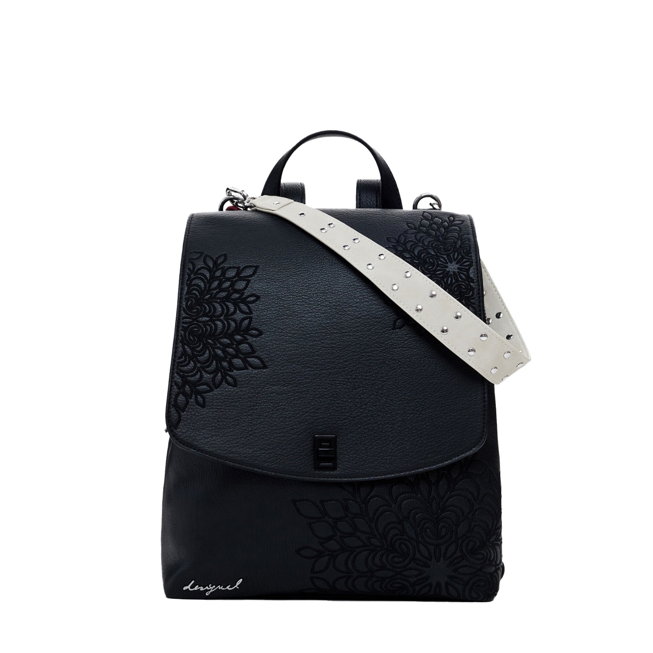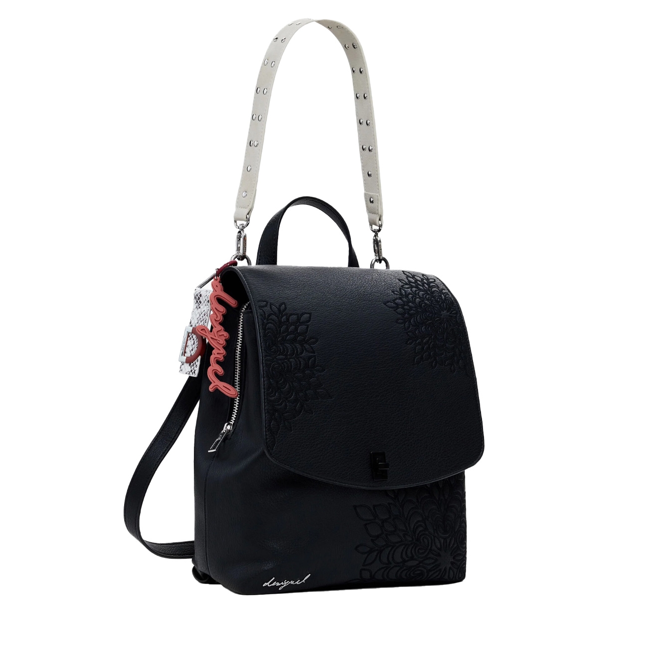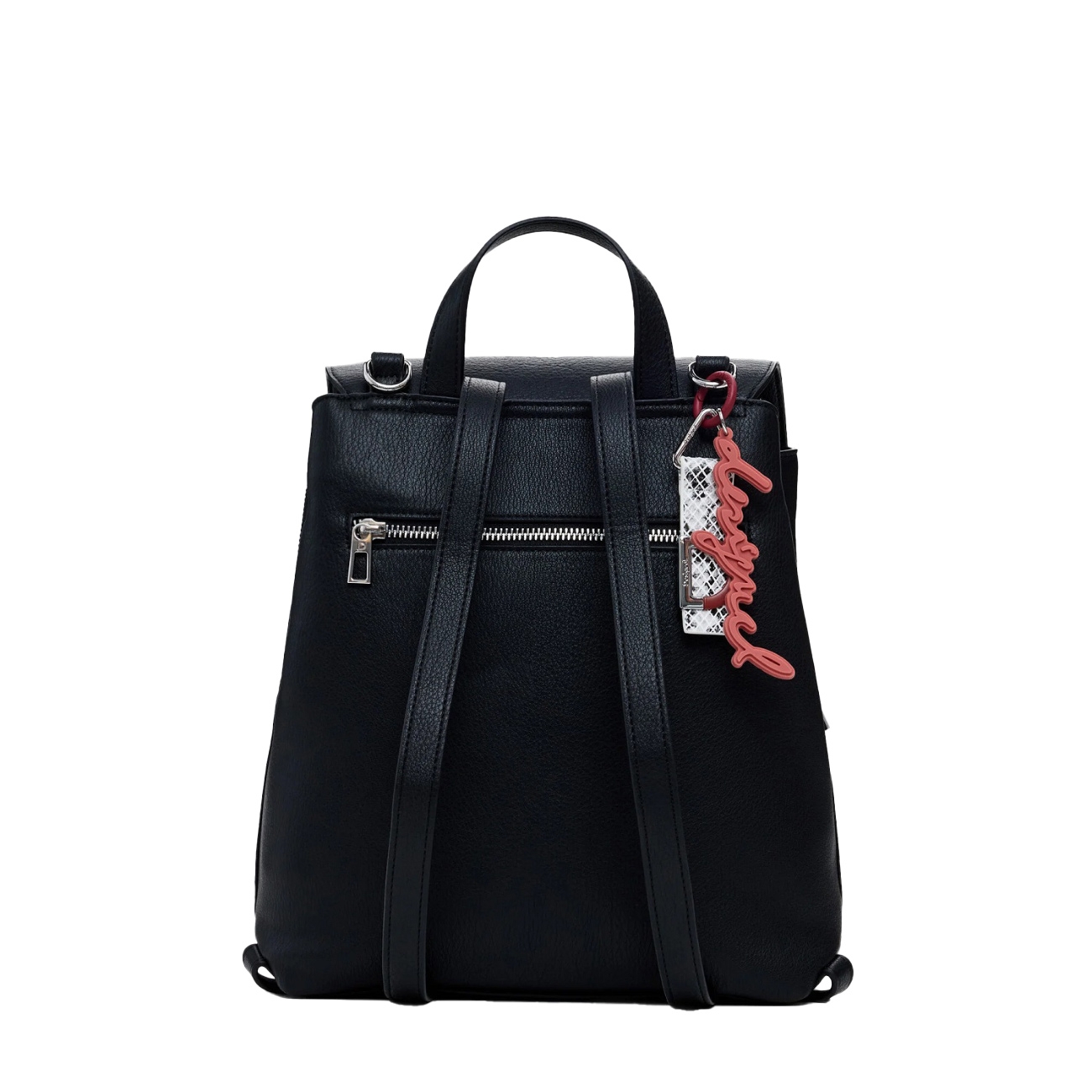 Small Embossed Flap Backpack Schwarz Desigual Rucsacuri