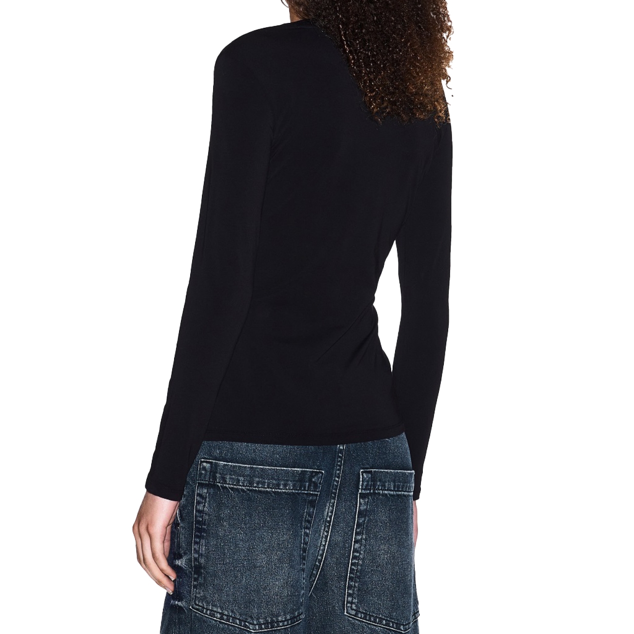 Tricou din bumbac cu mânecă lungă, decorat frontal cu logo-ul A|X Armani Exchange realizat din microstrasuri ton pe ton, pentru un efect subtil și sofisticat. Croiala este dreaptă, cu decolteu rotund și finisaje minimaliste, potrivită pentru a fi purtată atât în ținute casual, cât și în combinații smart-casual. Textura moale a materialului oferă confort pe parcursul întregii zile, fiind o alegere ideală pentru sezonul rece.