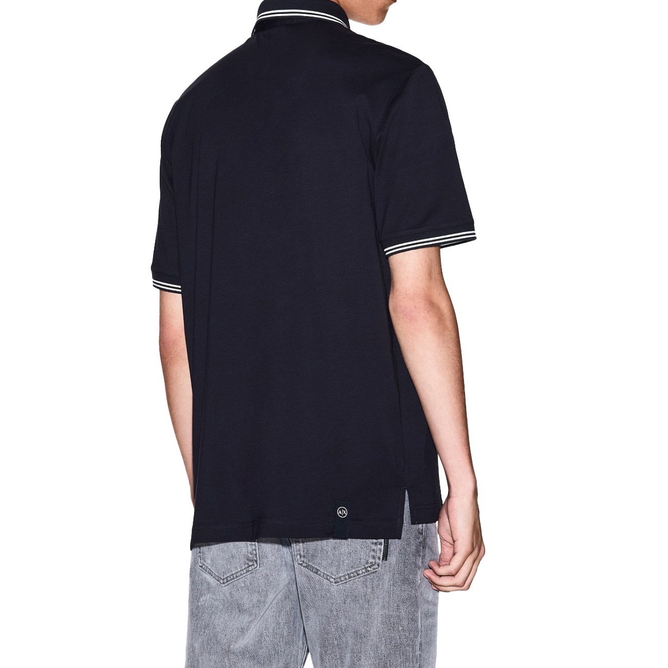 Tricoul polo din bumbac oferă un aspect clasic și versatil, având guler cu dungi contrastante și mâneci scurte. Logo-ul discret Armani Exchange 1991 aplicat pe piept adaugă o notă modernă, iar detaliile fine de pe margini completează designul elegant.