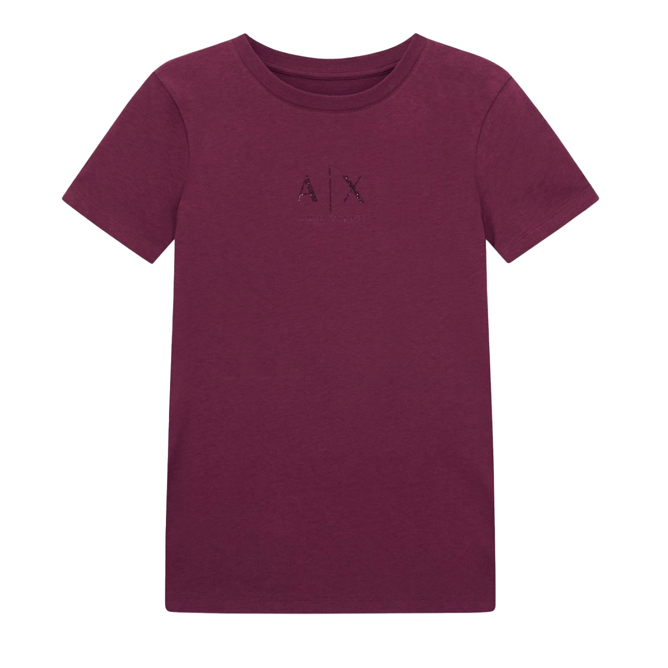Tricou din bumbac moale, cu croială lejeră și design minimalist, ideal pentru ținutele casual. Modelul se distinge prin logo-ul A|X aplicat frontal cu detalii subtile strălucitoare, ce adaugă o notă rafinată. Gulerul rotund și mânecile scurte completează stilul clasic al acestui tricou, oferind confort și versatilitate.