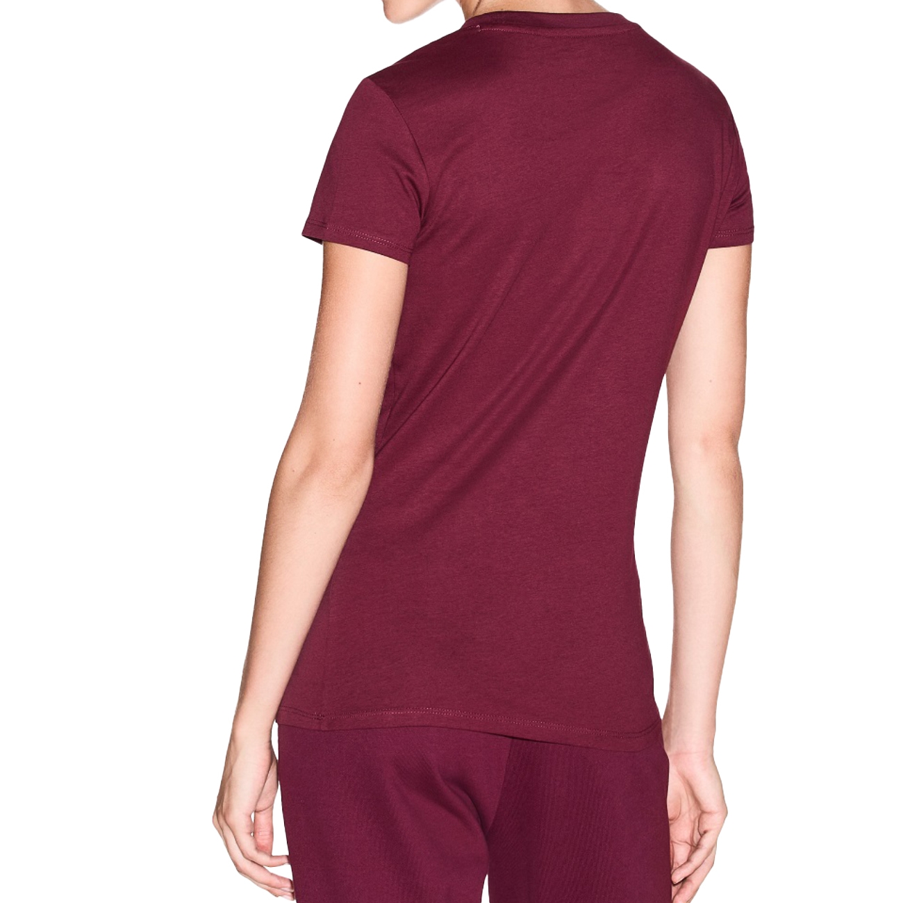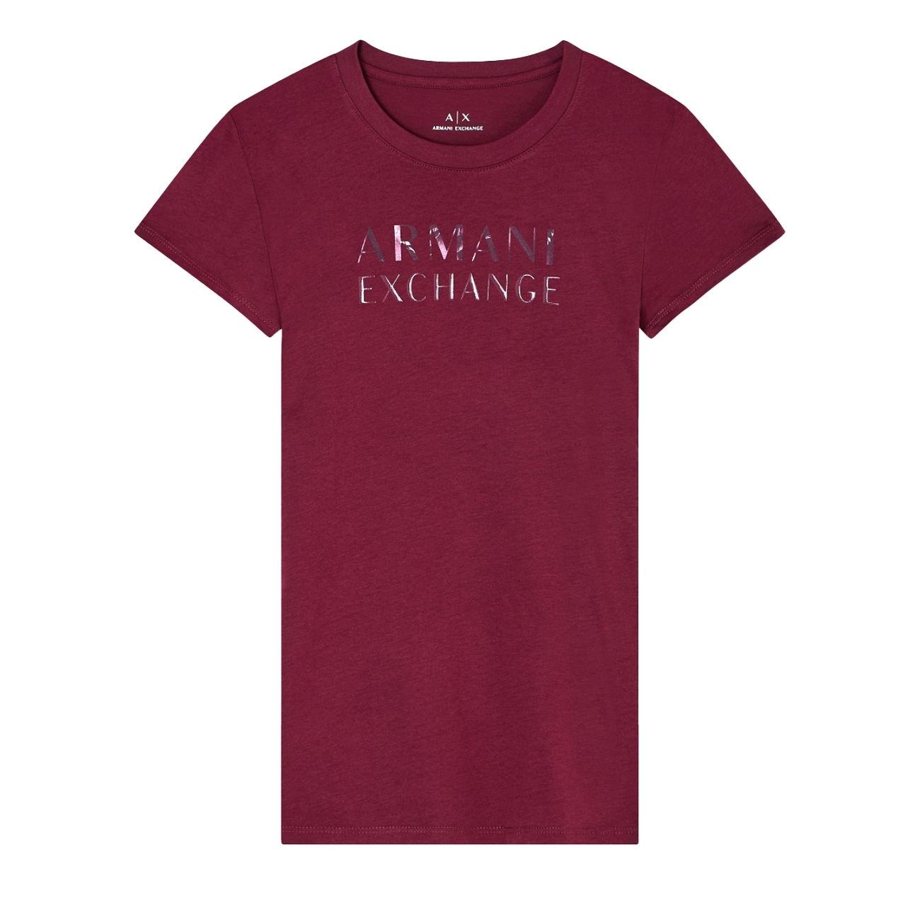 Tricoul Armani Exchange din bumbac este o alegere rafinată pentru un look casual cu accente feminine. Croiala cambrată evidențiază silueta, iar mânecile scurte și gulerul rotund oferă confort la purtare. Logo-ul metalizat de pe piept adaugă o notă strălucitoare și modernă, făcând din acest tricou o piesă versatilă, potrivită atât pentru ținute de zi, cât și pentru combinații urbane.