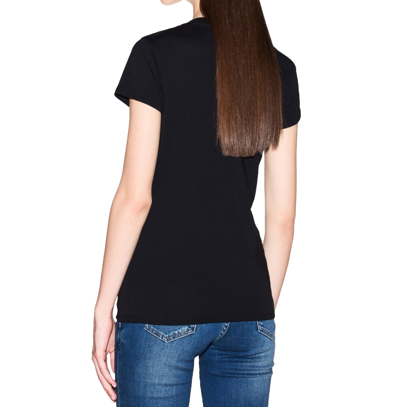 Tricou negru Armani Exchange cu mâneci scurte, ideal pentru ținute casual moderne. Modelul este realizat din bumbac moale și are logo-ul brandului scris cu efect strălucitor în zona pieptului, adăugând o notă discretă de eleganță.