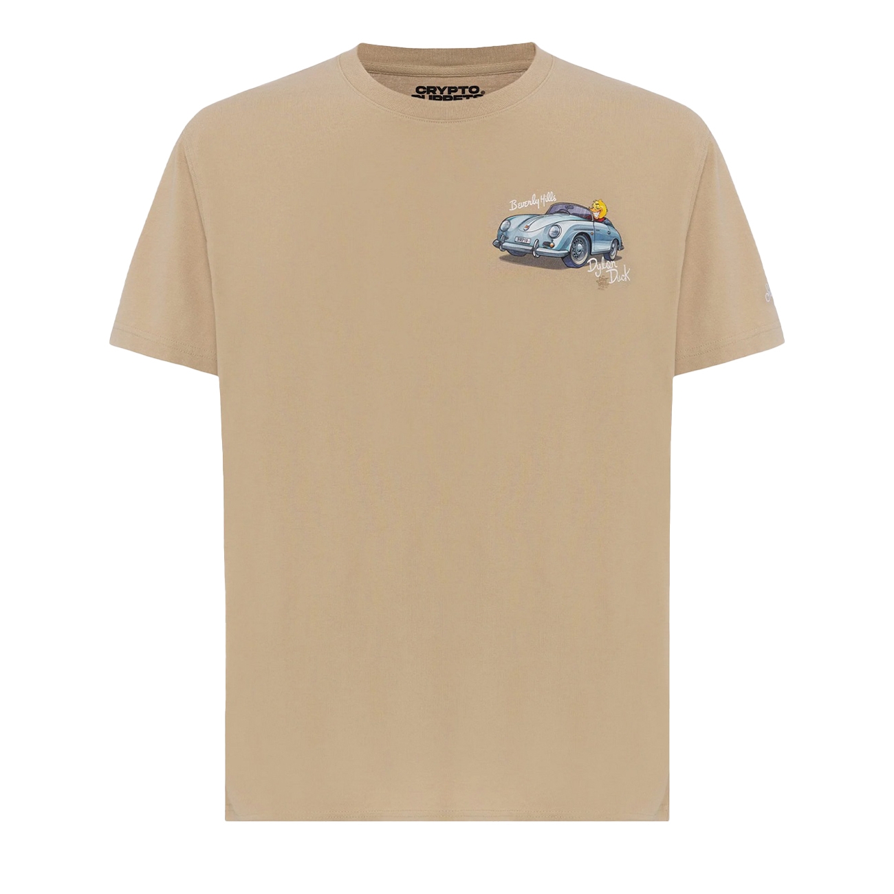 Tricoul Saint Barth T-Shirt Dylan Duck este o piesă casual cu accente jucăușe și nostalgice, perfectă pentru garderoba de vară. Realizat într-o nuanță de bej cald, acest tricou este decorat pe partea frontală cu o grafică ilustrativă care îl surprinde pe Dylan Duck la volanul unei mașini retro, în stil Beverly Hills. Materialul moale din bumbac asigură confort pe tot parcursul zilei, iar croiala clasică îl face ușor de integrat în orice ținută relaxată.