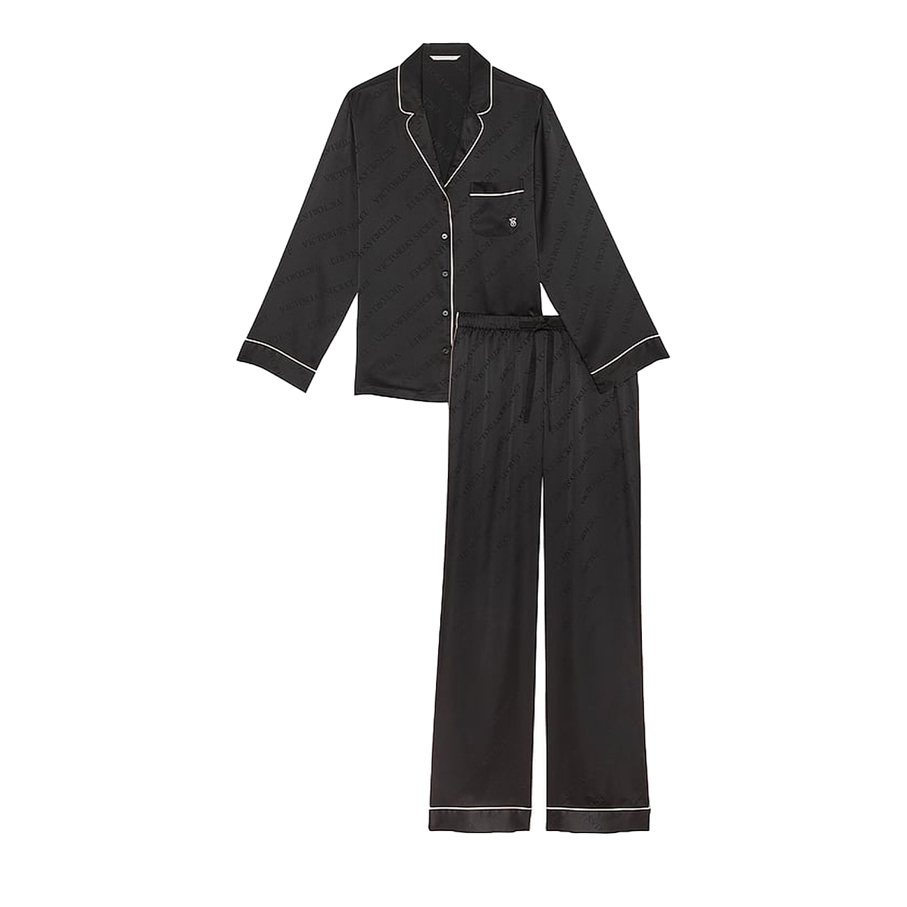 Glazed Satin Long Pajama Set - Black Victoria's Secret Pijamale L
