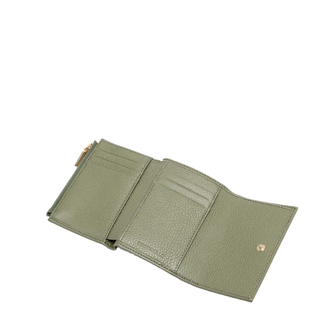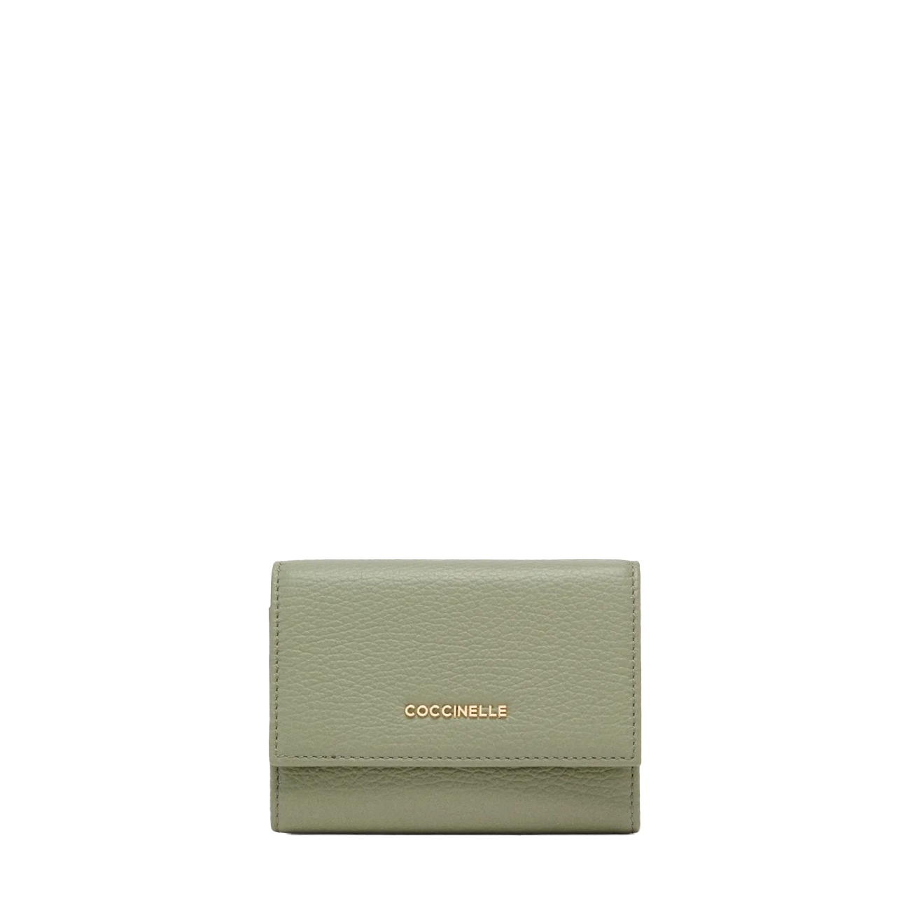 Portofelul Coccinelle Metallic Soft este un accesoriu compact și rafinat, confecționat din piele naturală texturată de înaltă calitate. Designul său minimalist este completat de logo-ul metalic discret și închiderea practică. Dispune de compartimente bine organizate pentru carduri, bancnote și monede, fiind ideal pentru un stil de viață modern și elegant.