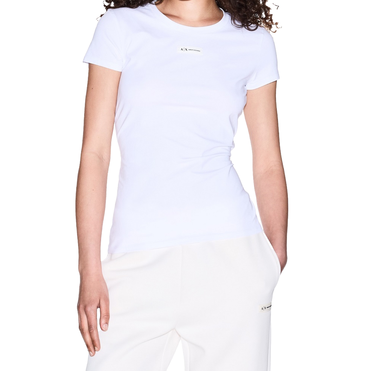 Tricoul Armani Exchange aduce în prim-plan un design minimalist, dar extrem de actual, perfect pentru garderoba de zi cu zi. Construit din bumbac moale și elastic, acest model cu croială cambrată oferă o siluetă feminină și un confort absolut, urmând linia corpului fără a compromite libertatea de mișcare. Gulerul rotund clasic și mânecile scurte completează aspectul casual, în timp ce eticheta discretă aplicată în zona pieptului cu logo-ul A|X conferă o notă subtilă de identitate vizuală și rafinament. Tricoul se remarcă prin versatilitatea sa, fiind ușor de integrat în ținute relaxate de zi sau în combinații sportive-chic.